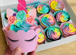Turn your cupcakes into little unicorns with these card wraps and toppers. The horn toppers are too tall to fit in the box so you can have fun adding them when you get them out!