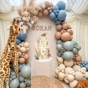 From stunning balloon arches and backdrops all the way to full party palace set up